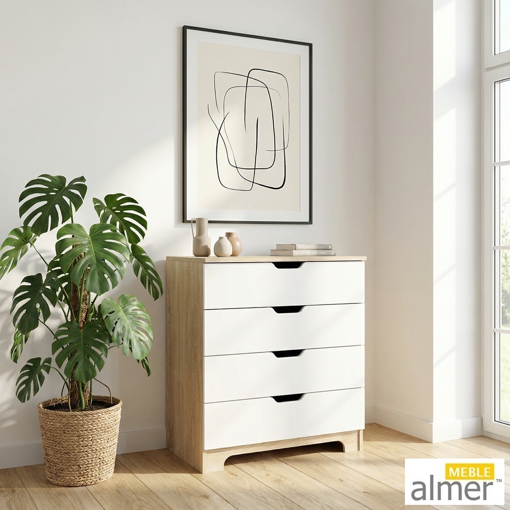Pojemne szuflady: Cztery głębokie szuflady pozwalają na wygodne przechowywanie ubrań, zabawek, dokumentów lub tekstyliów domowych.