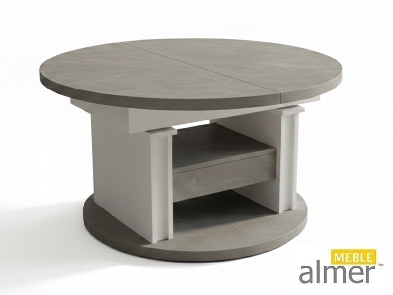 Ławostół L65 Okrągły Jasny Atelier Biały Szuflada 100(+40) w.60(+15) Podnoszona Rozkładana Ława Stolik