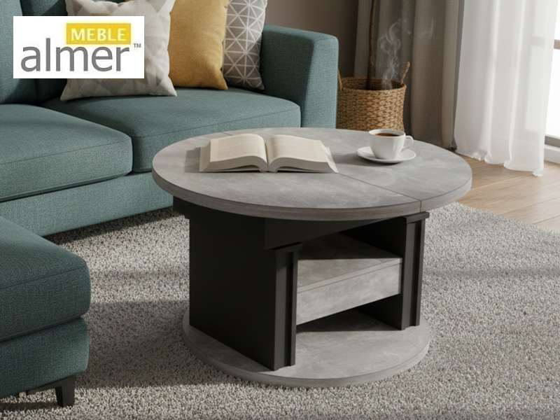 Mała okrągła ława L65 z Szufladą rozkładana podnoszona z możliwością zmiany kolorów i rozmiarów