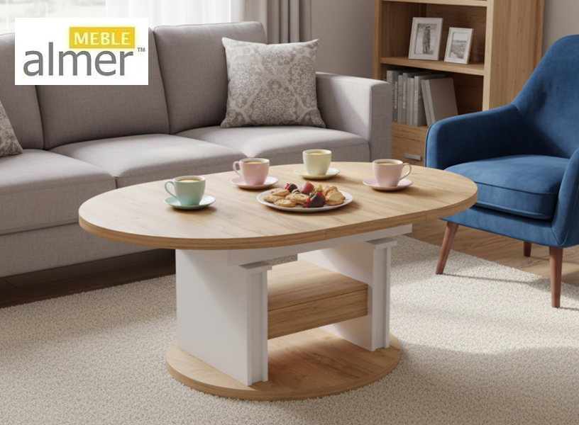 Ławostół L02 Szuflada Ława Rozkładana Podnoszona Owalna