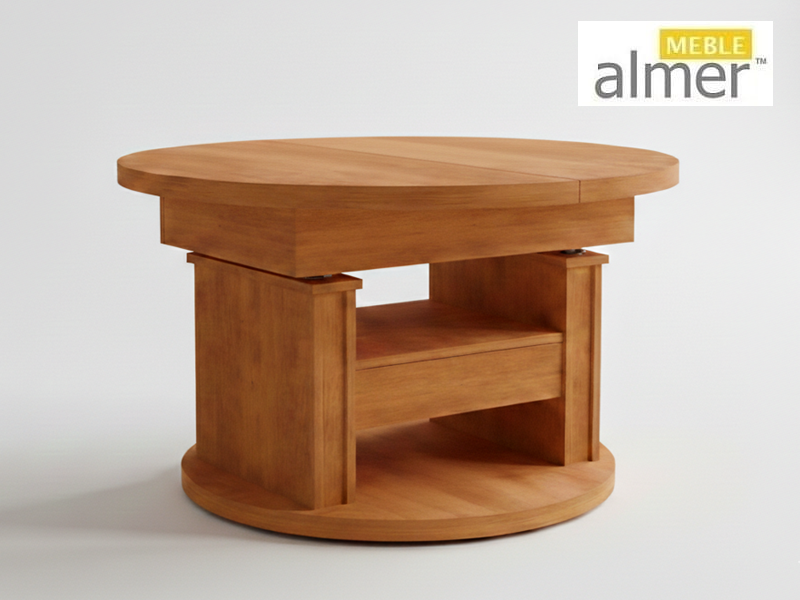 Ławostół L65 Okrągły Olcha Szuflada 100(+40) w.60(+15) Podnoszona Rozkładana Ława Stolik