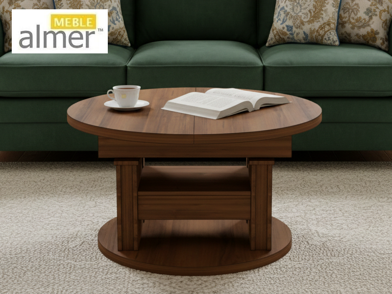 Ławostół L65 Okrągły Orzech Ecco Szuflada 100(+40) w.60(+15) Podnoszona Rozkładana Ława Stolik