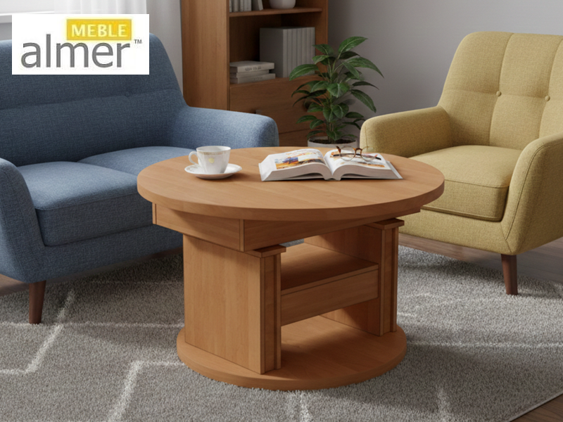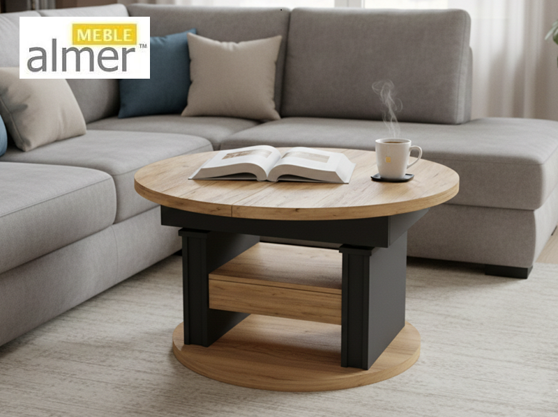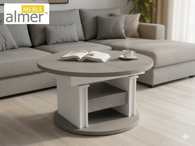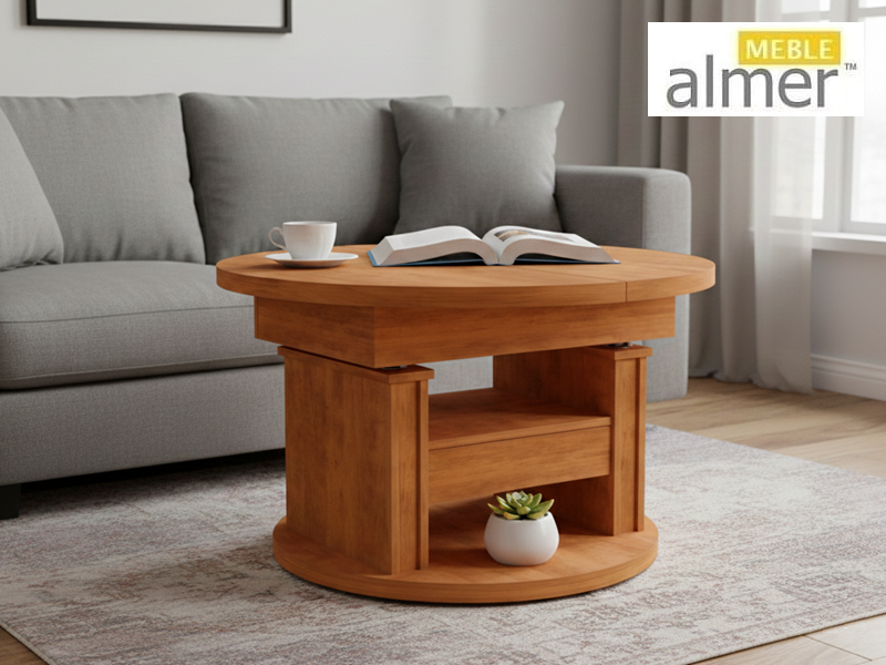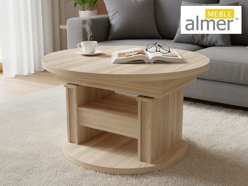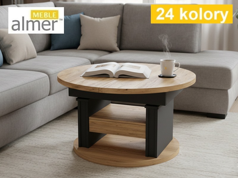 Mała okrągła ława L65 z Szufladą rozkładana podnoszona z możliwością zmiany kolorów i rozmiarów