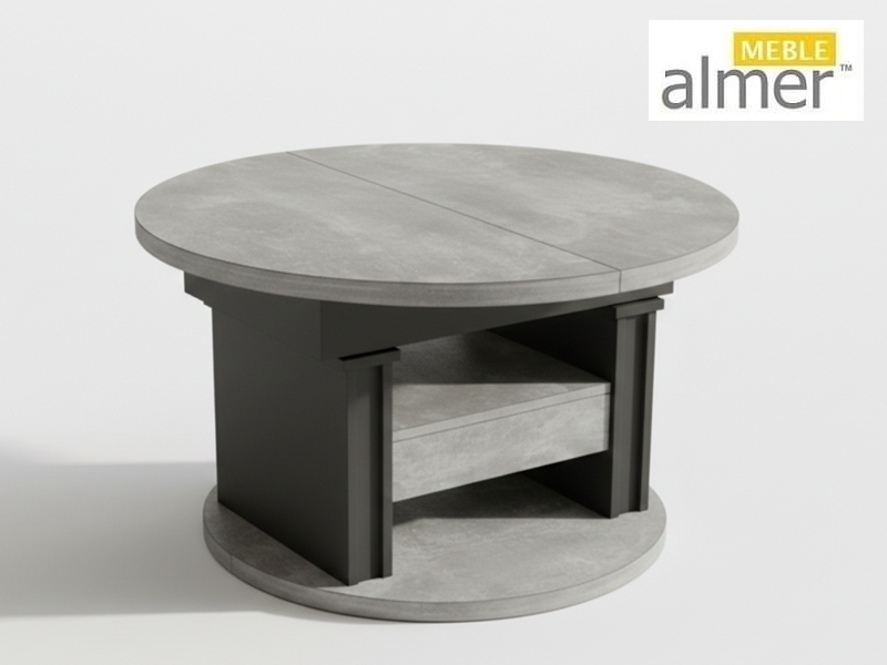 Ławostół L65 Okrągły Atelier Jasny Czarny Szuflada 100(+40) w.60(+15) Podnoszona Rozkładana Ława Stolik