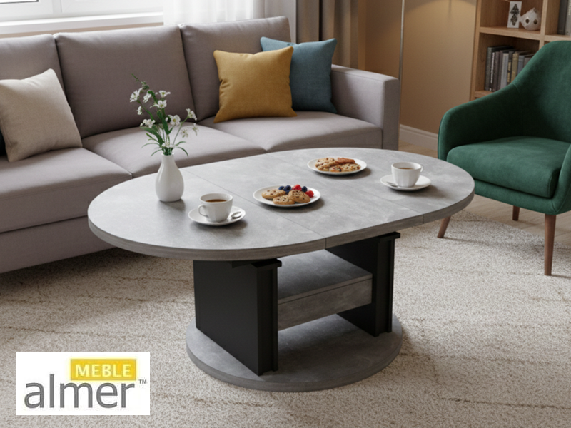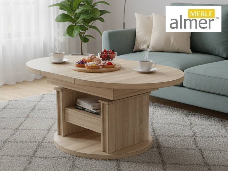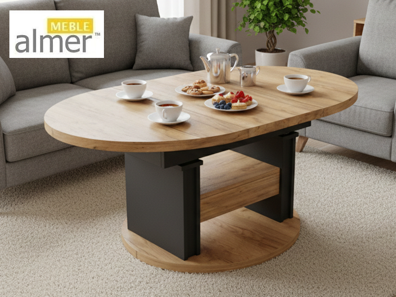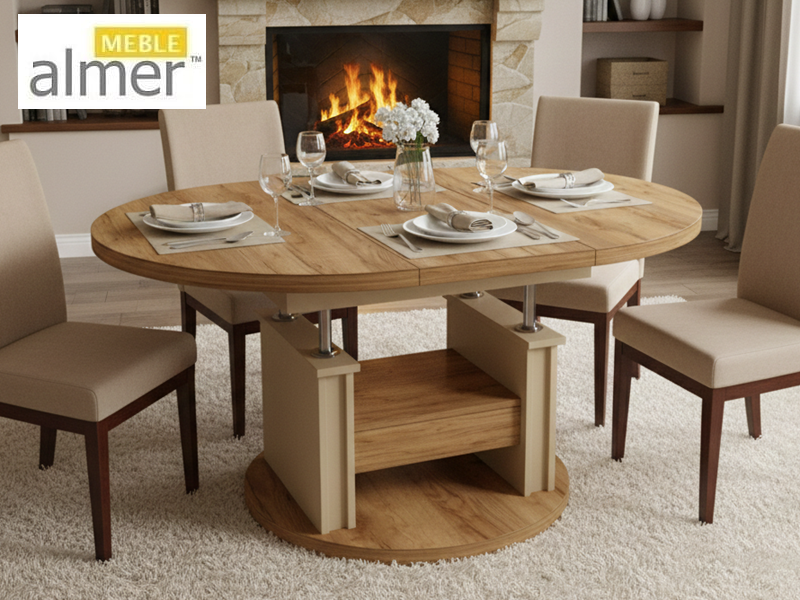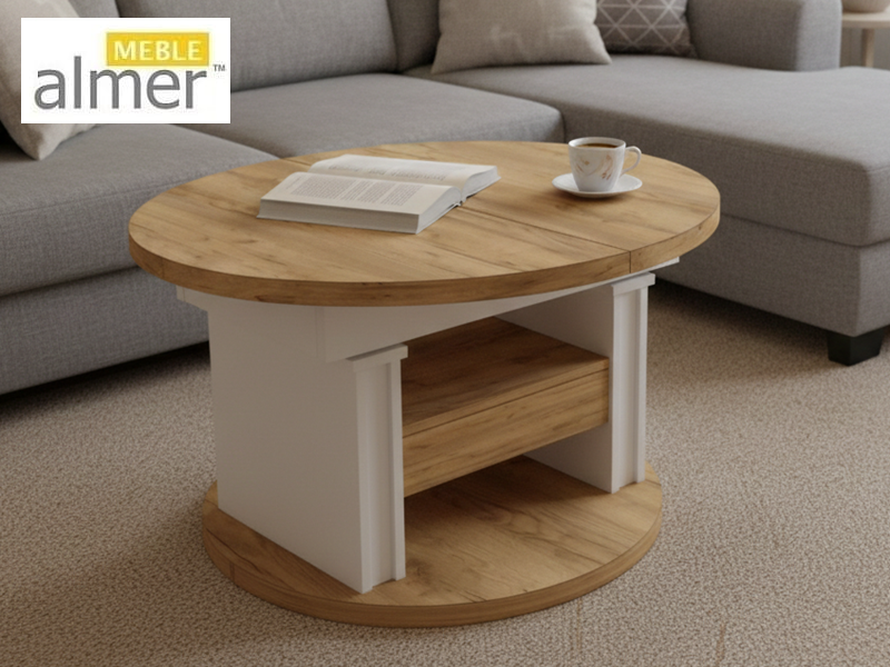 Ławostół L02 Szuflada Ława Rozkładana Podnoszona Owalna