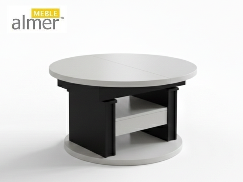 Ławostół L65 Okrągły Biały Czarny Szuflada 100(+40) w.60(+15) Podnoszona Rozkładana Ława Stolik