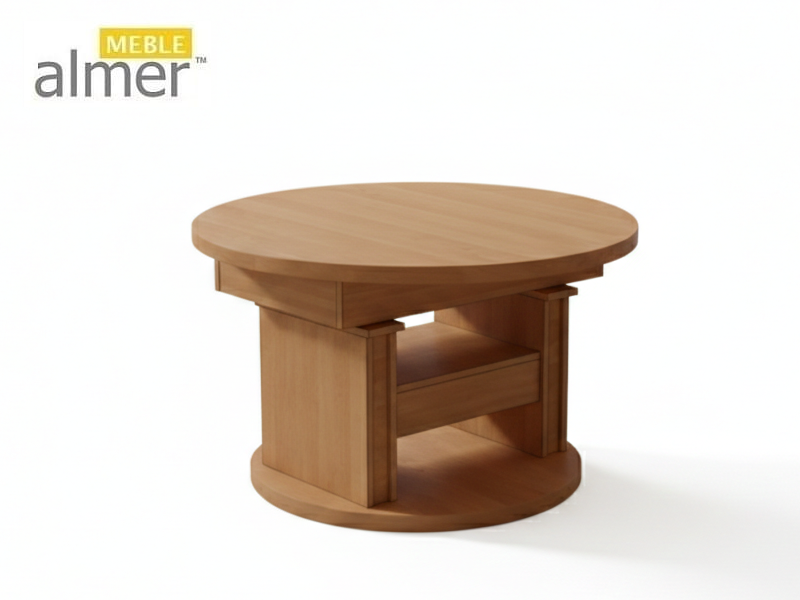 Ławostół L65 Okrągły Olcha Szuflada 100(+40) w.60(+15) Podnoszona Rozkładana Ława Stolik