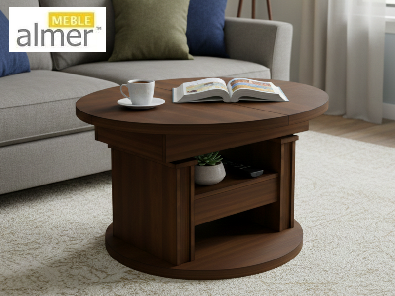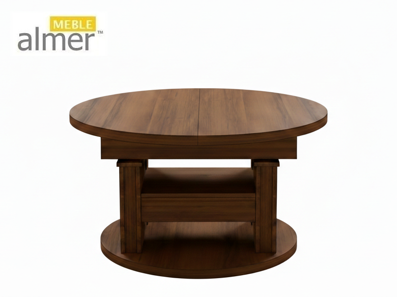Ławostół L65 Okrągły Orzech Ecco Szuflada 100(+40) w.60(+15) Podnoszona Rozkładana Ława Stolik