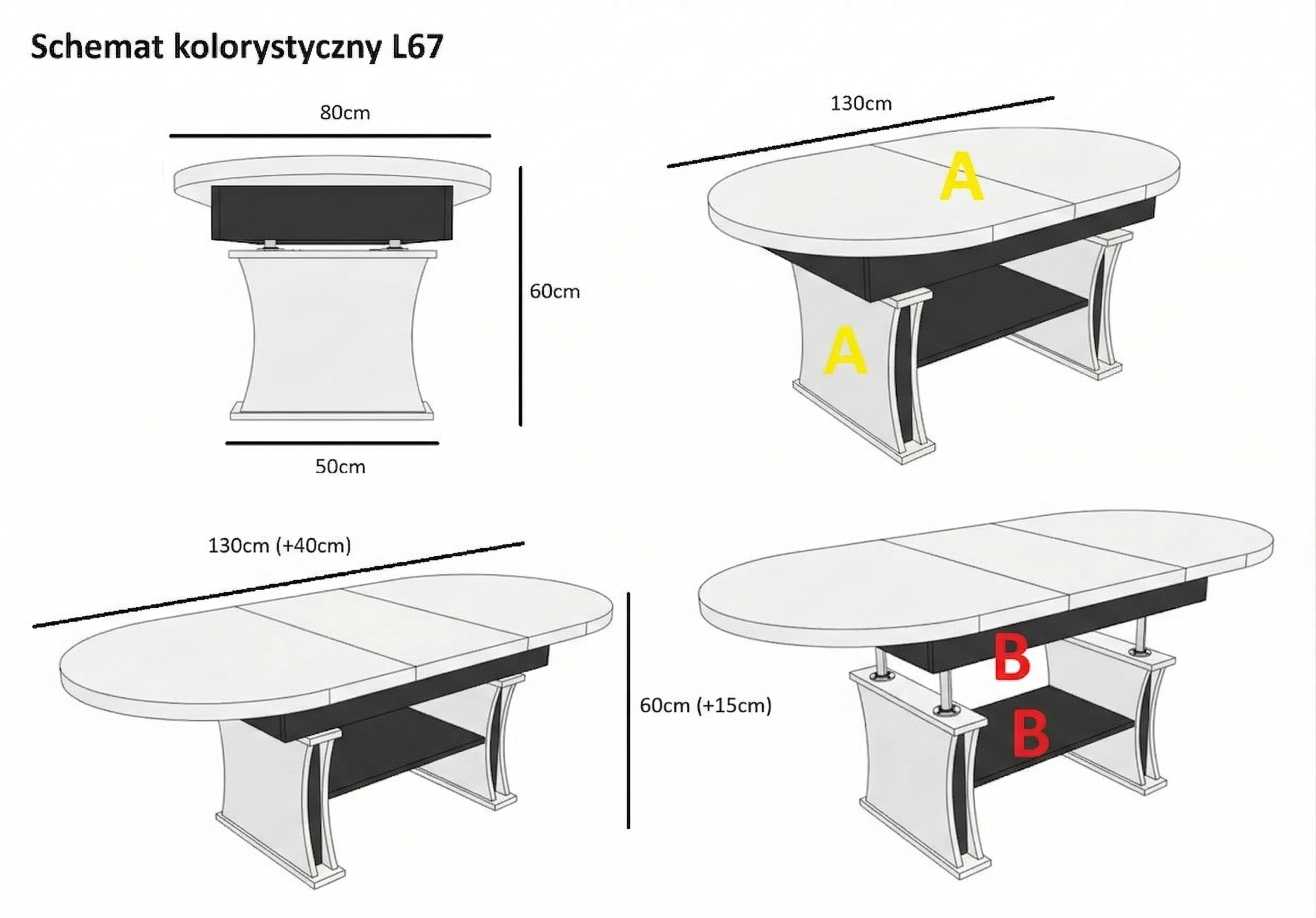 W tej ofercie prezentujemy ławę w kolorach A: atelier jasny B: biały mat ale indywidualne zamówienie możemy wykonać ławę w dowolnym zestawieniu kolorów, według schematu A i B podanego poniżej. Dostępne kolory znajdują się na dole oferty.